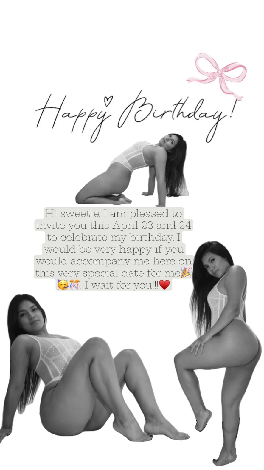 Cariño te espero!!! Este 23 y 24 de abril para celebrar mi cumpleaños. Estaría muy feliz si me acompañas aquí disfrutando de esta fecha tan especial para mi ♥️😘
